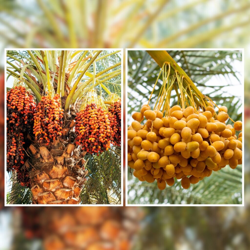 The date palm is dioecious, having separate male and female plants.